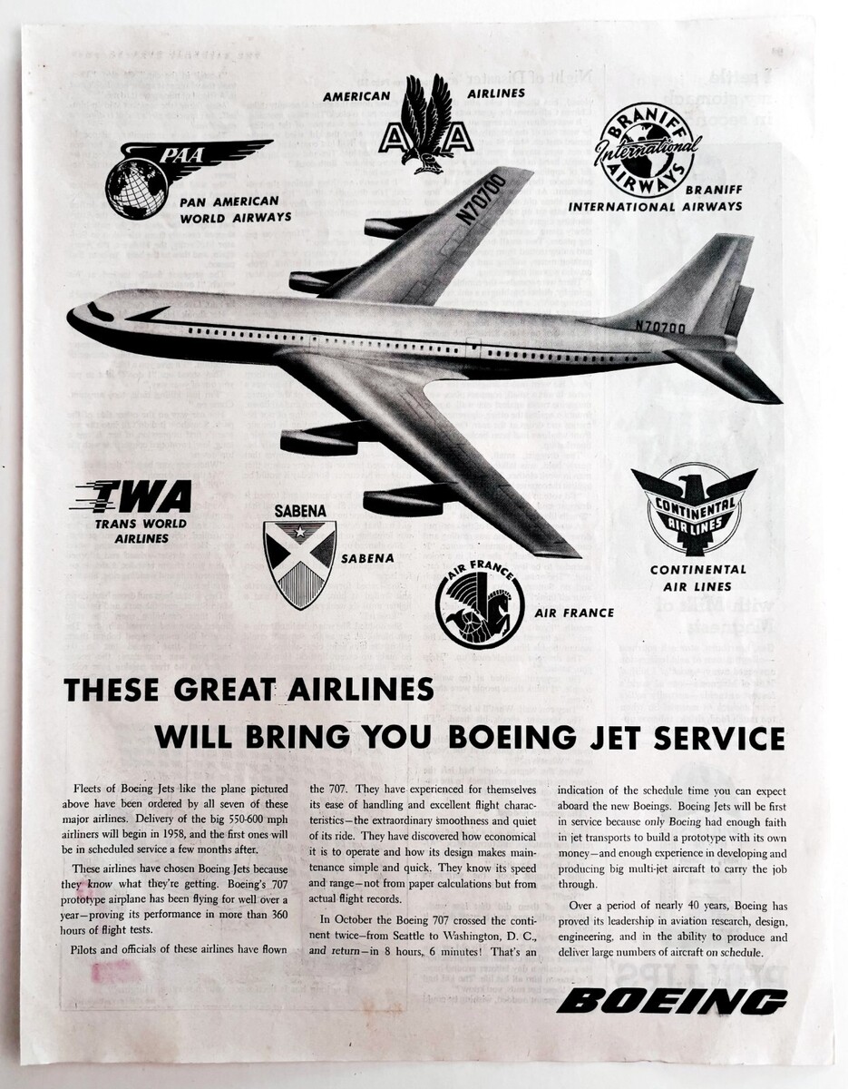 - 1956 Boeing Jet Services Advertisement Antique Aviation Airlines DWWW13