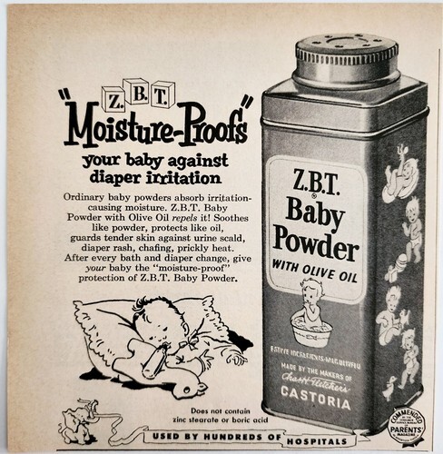 - 1956 Castoria Baby Powder Olive Oil Advertisement ZBT Infant Product DWPP23