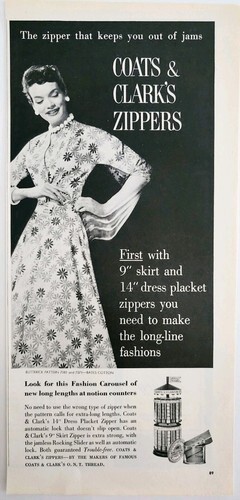 - 1956 Coats & Clark Zipper Dresses Advertisement Vintage Clothing Fashion DWPP24