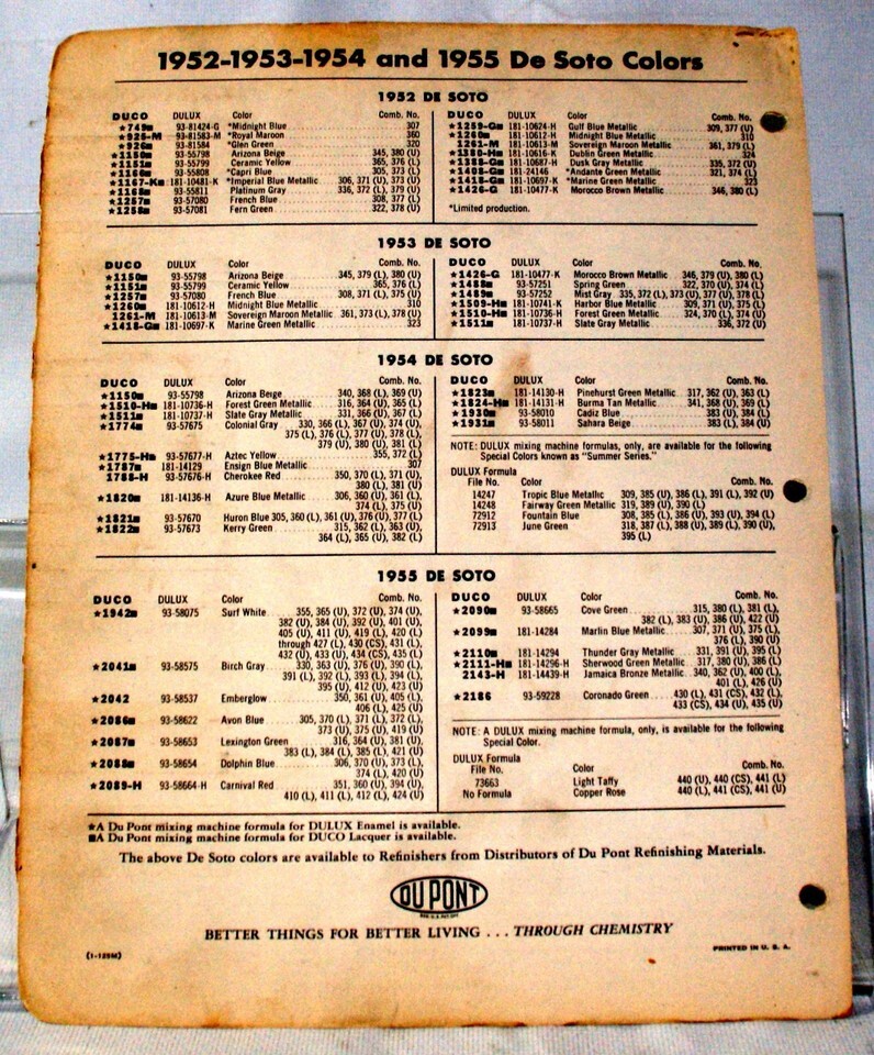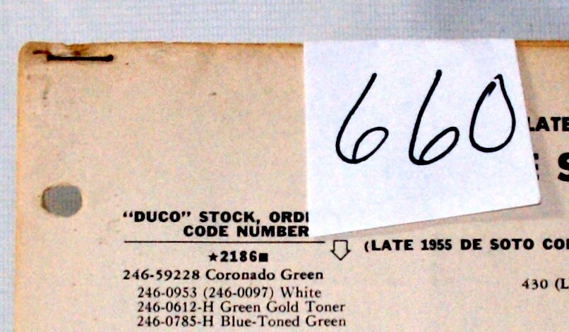 1956 De Soto Exterior Paint Samples/52-55 Paint Code Numbers 660