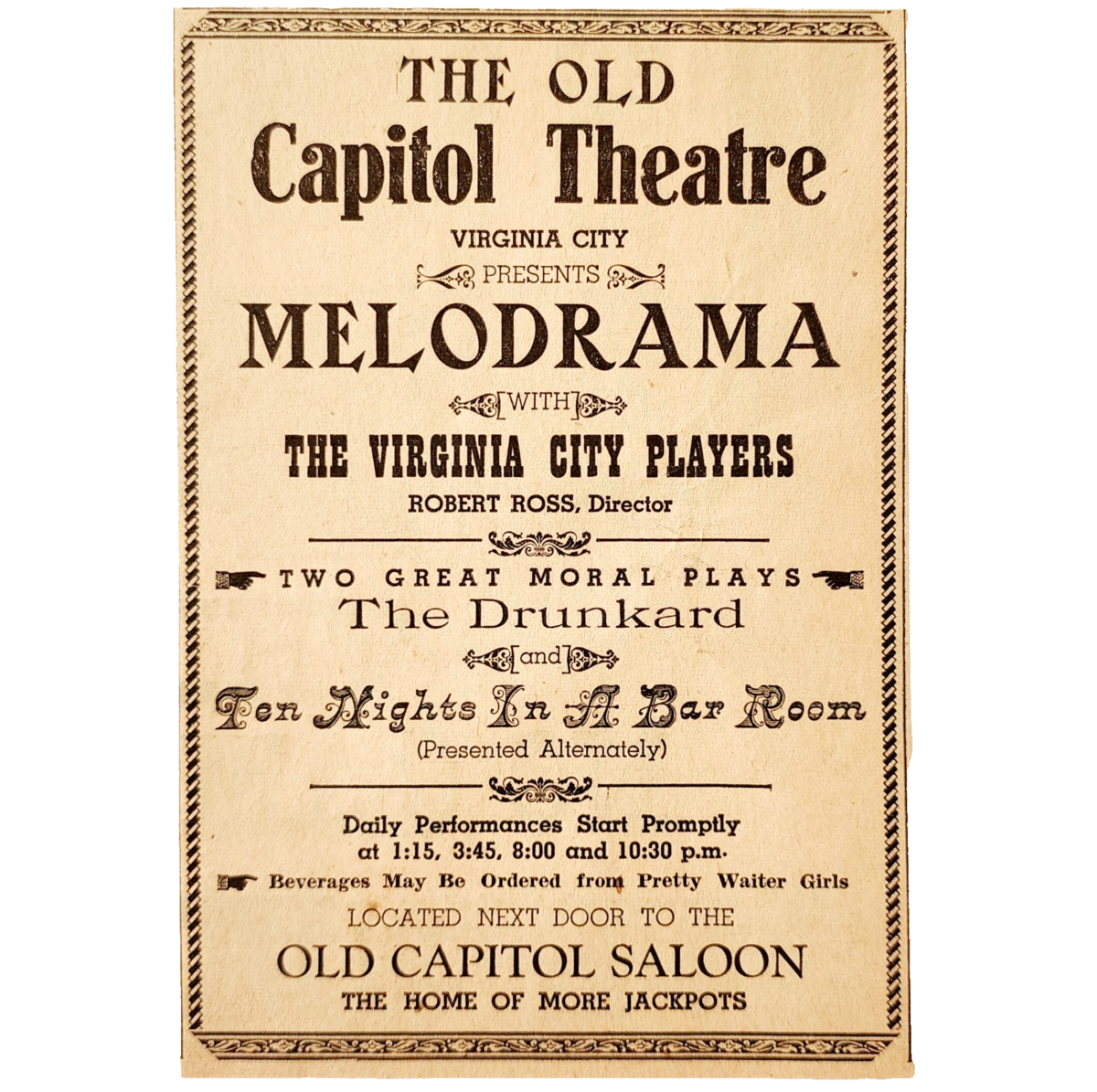 - 1957 Capitol Theatre Drunkard Advertisement Virginia City Players Nevada DWX10B