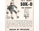1957 Delanor Sok-O Monkey Plush Kit Advertisement Crafts Sewing Supply F7C
