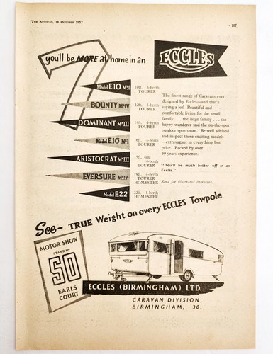 - 1957 Eccles Caravan Camper Import Advertisement Autocar Automobilia DWPP2