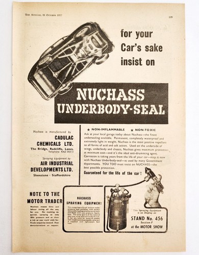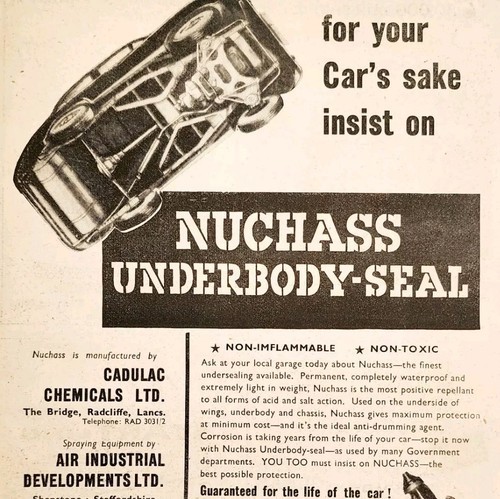 - 1957 Nuchass Underbody Sealant Import Advertisement Autocar Automobilia DWPP2