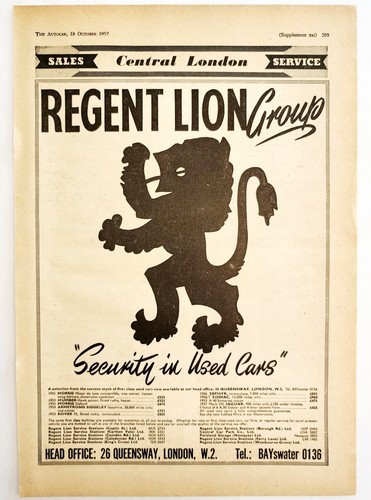- 1957 Regent Lion Used Cars London Import Advertisement Autocar Automobilia DWPP1