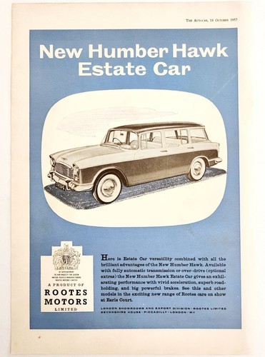 - 1957 Rootes Humber Hawk Estate Import Advertisement Autocar Automobilia DWPP4