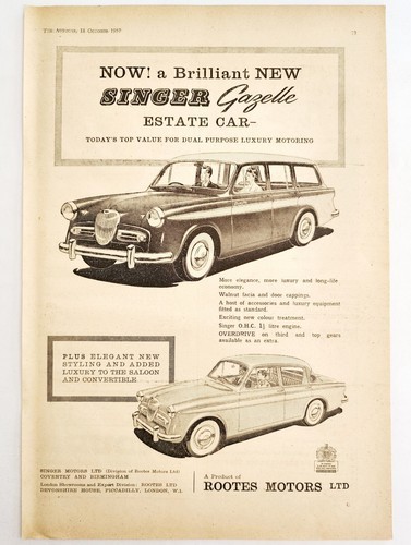 1957 Rootes Singer Gazelle Car Import Advertisement Autocar Automobilia DWPP3
