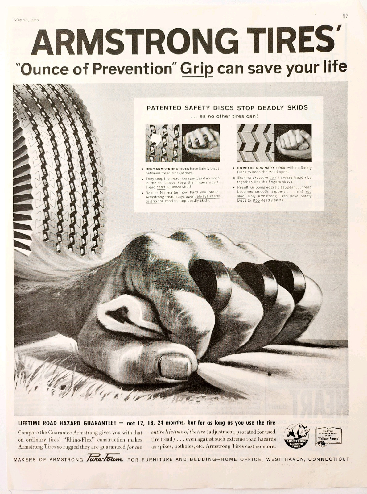 - 1958 Armstrong Tires Rhino Flex Advertisement Automobilia Car Supply DWII30