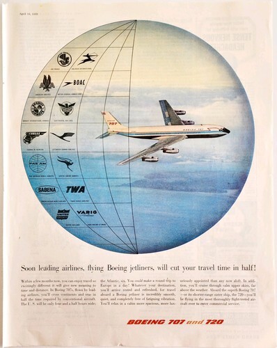 - 1958 Boeing 707 720 Airplane Travel Advertisement Aviation Airlines DWII22