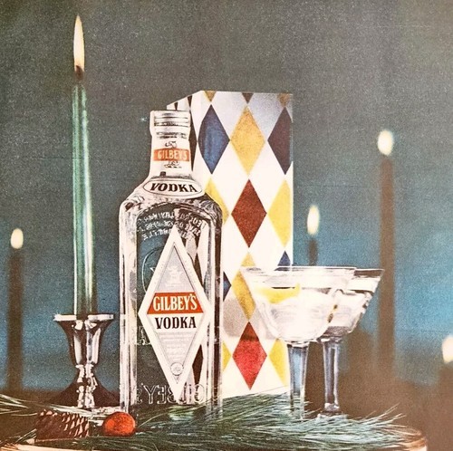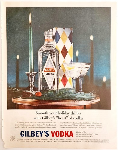 - 1958 Gilbey's Vodka Holiday Christmas Advertisement Distillery Liquor HM2T