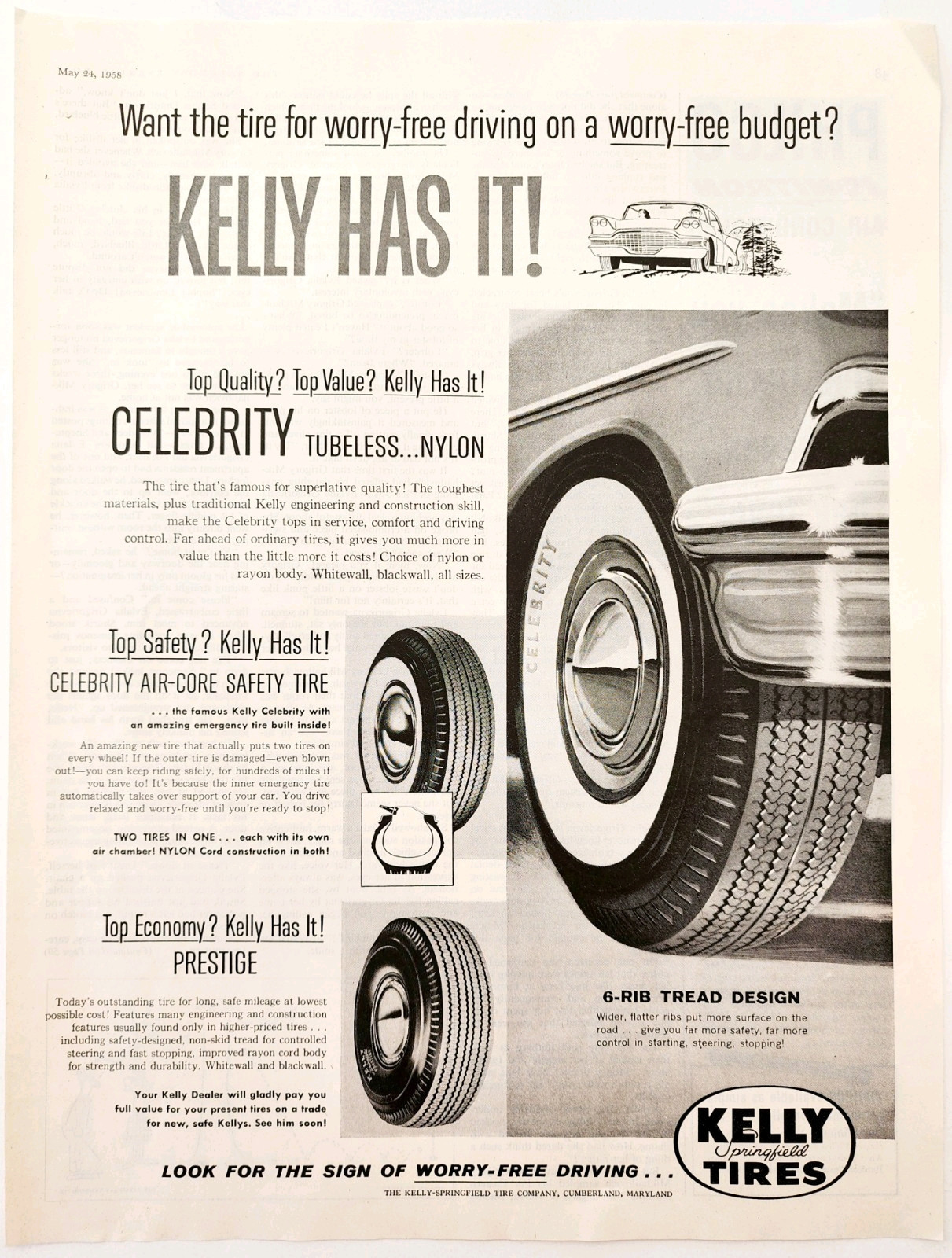- 1958 Kelly Springfield Tires Advertisement Automobilia Car Supply DWII30