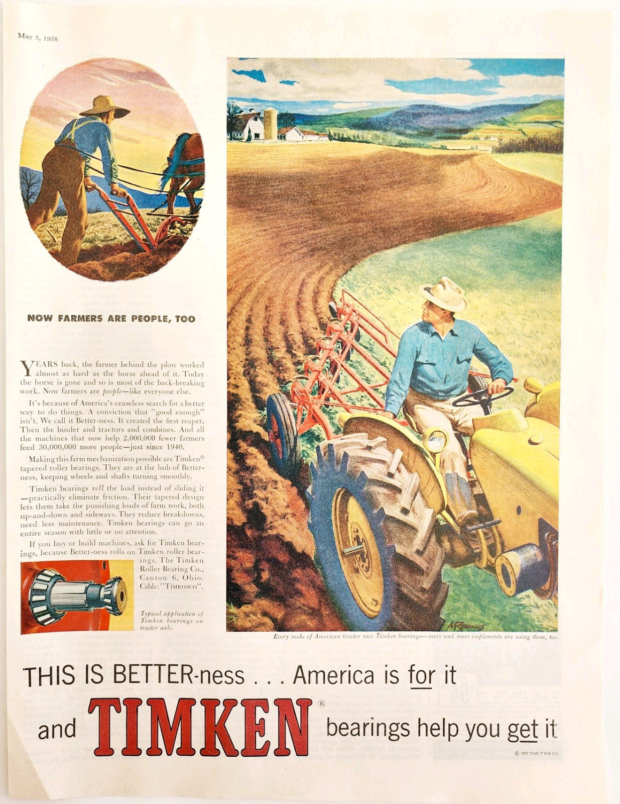 - 1958 Timken Bearings Tractor Supply Advertisement Farming Agriculture DWII29