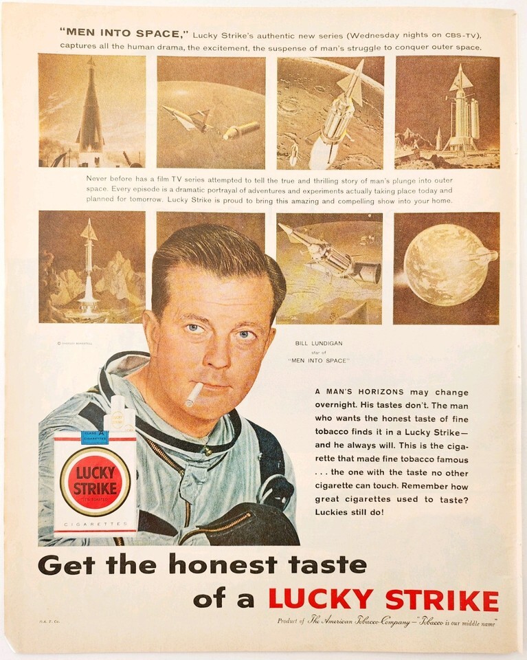 - 1959 Lucky Strikes Cigarettes Bill Lundigan Advertisement Tobacco Space DWII25