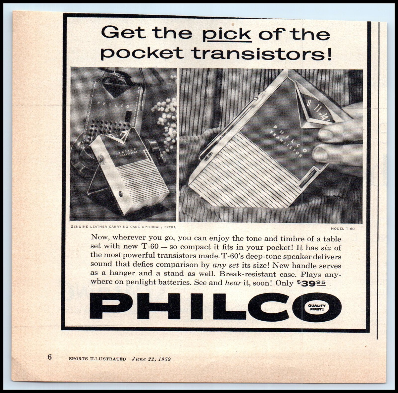 - 1959 Philco T-60 Pocket Transistor Radio PRINT AD BX4
