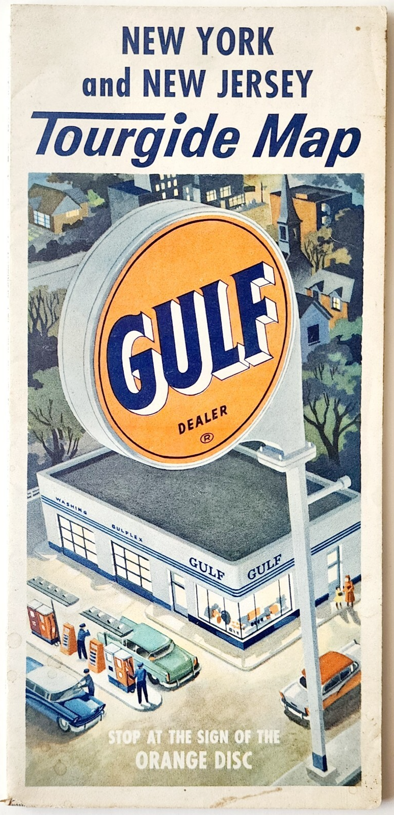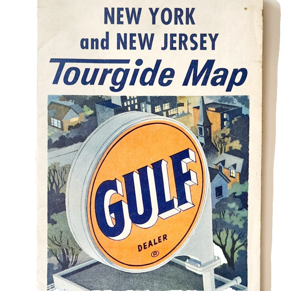 1960-70s Gulf Tourgide Map NY NJ Highways Roads Folding Vintage 25.5 x 32" F10