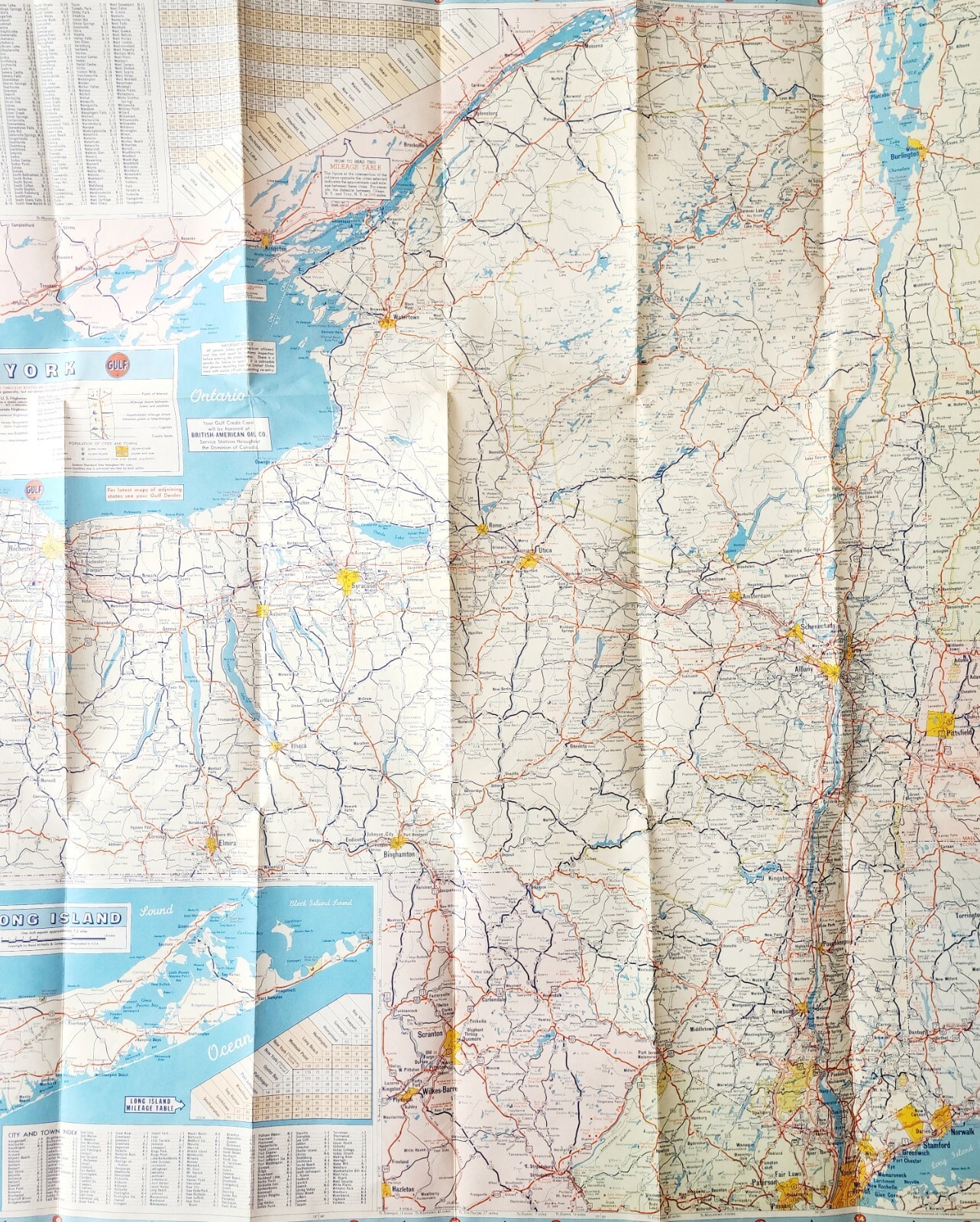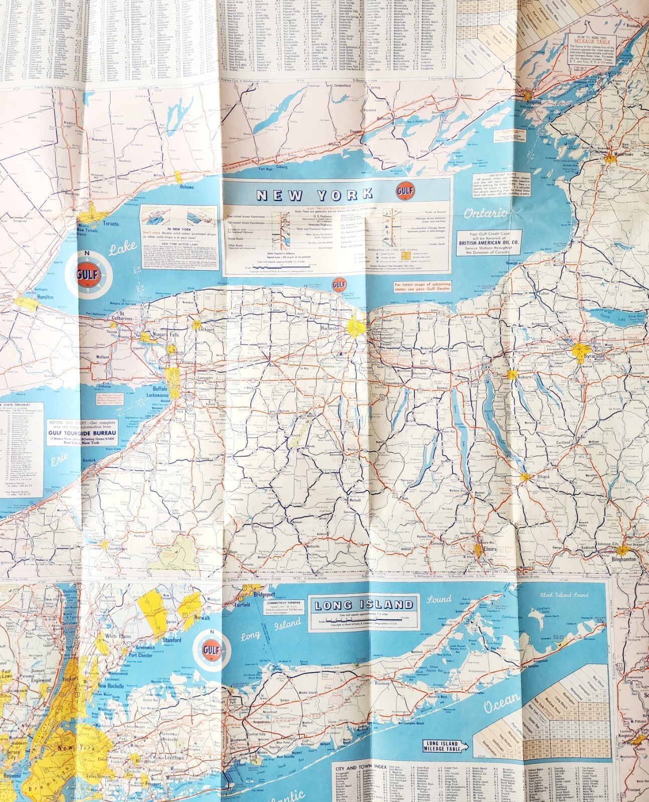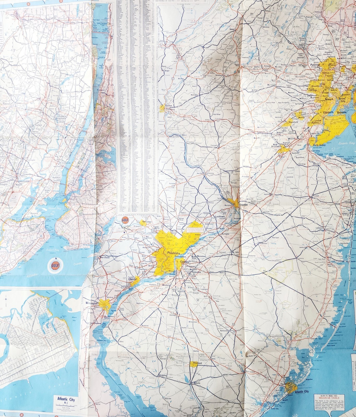 - 1960-70s Gulf Tourgide Map NY NJ Highways Roads Folding Vintage 25.5 x 32" F10