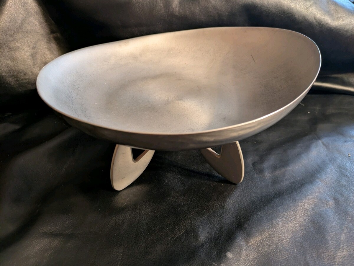 1960 Cast Aluminum Centerpiece Bowl Walnut Base B B Remembrance Atomic 11