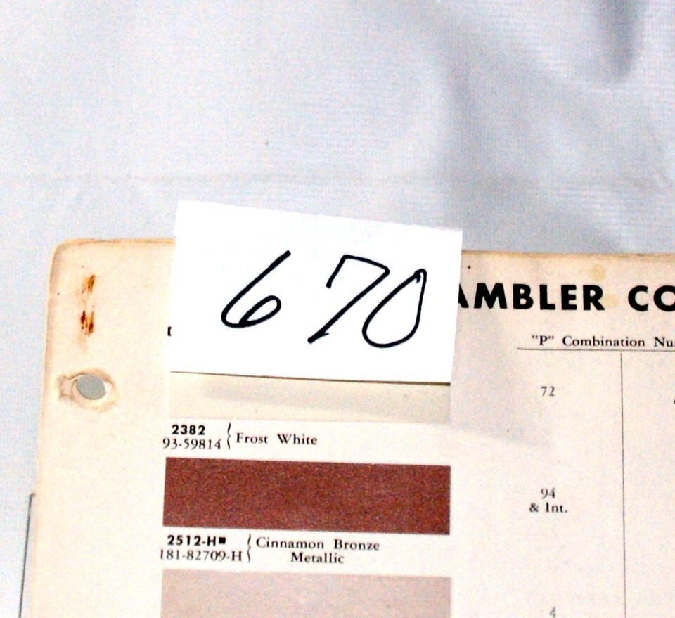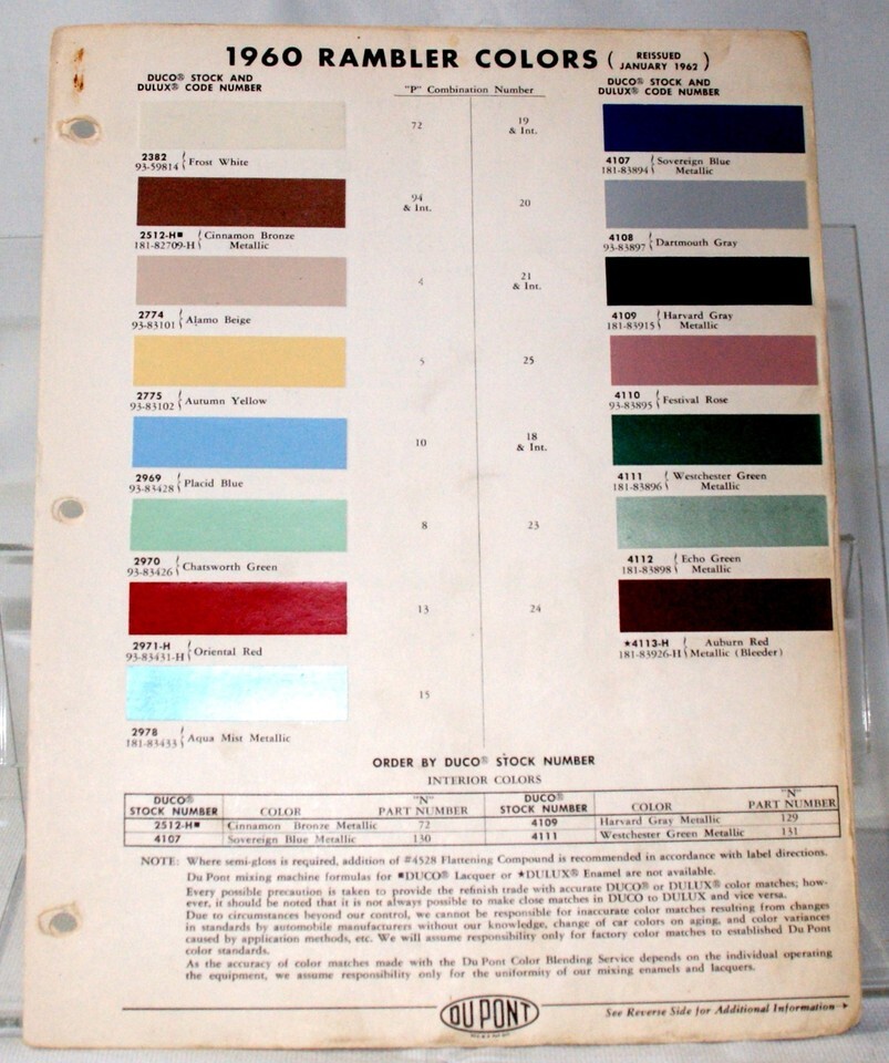 1960 Nash Rambler Exterior / Interior Color Numbers 670