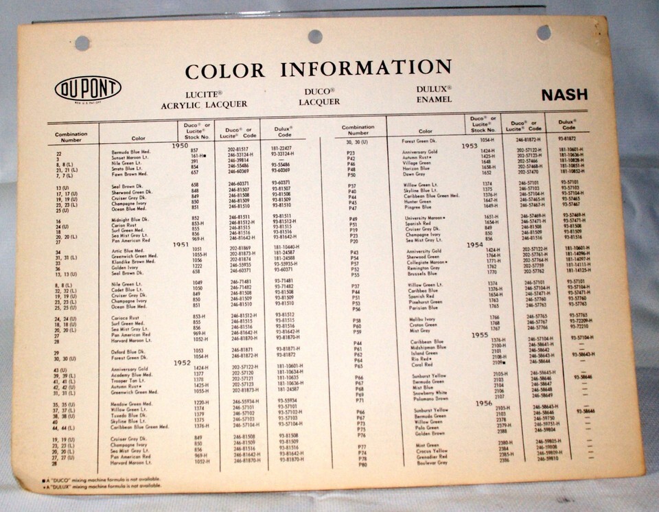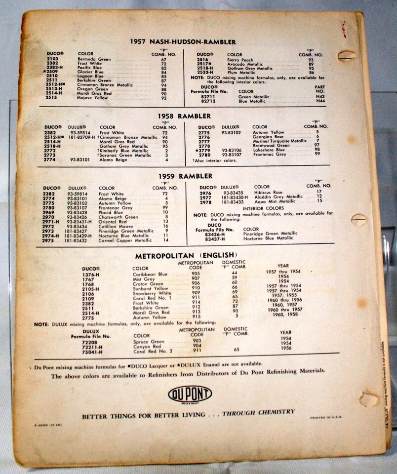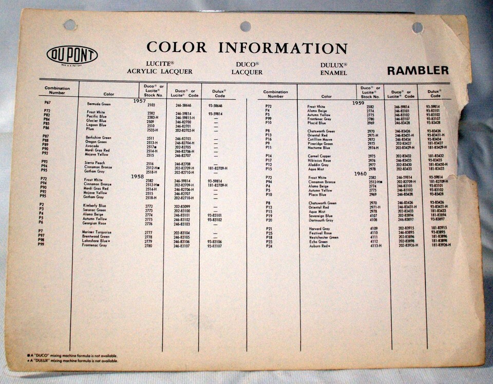 - 1960 Nash Rambler Exterior / Interior Color Numbers 670