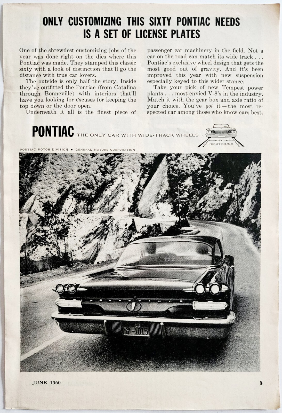 - 1960 Pontiac Bonneville Wide Track Advertisement Automobilia Vintage DWF25