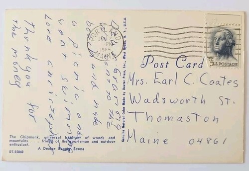 - 1960s Dexter Maine Chipmunk Postcard Nature Wildlife Animals Outdoors E86RP3