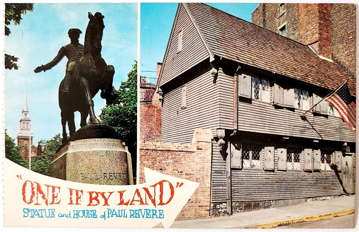 - 1960s Postcard Boston Statue House Of Paul Revere Faneuil Hall Massachusetts E8M
