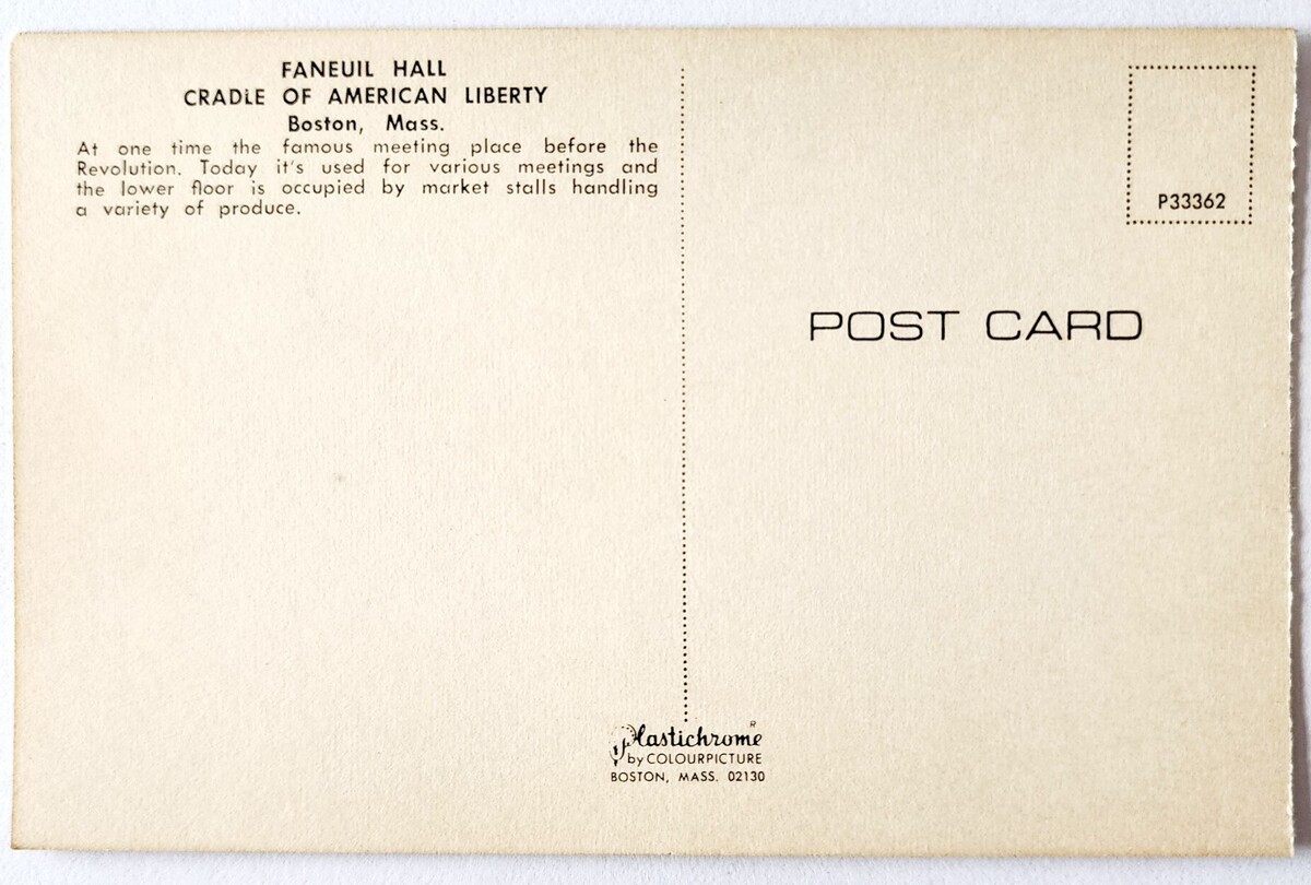 1960s Postcard Boston Statue House Of Paul Revere Faneuil Hall Massachusetts E8M