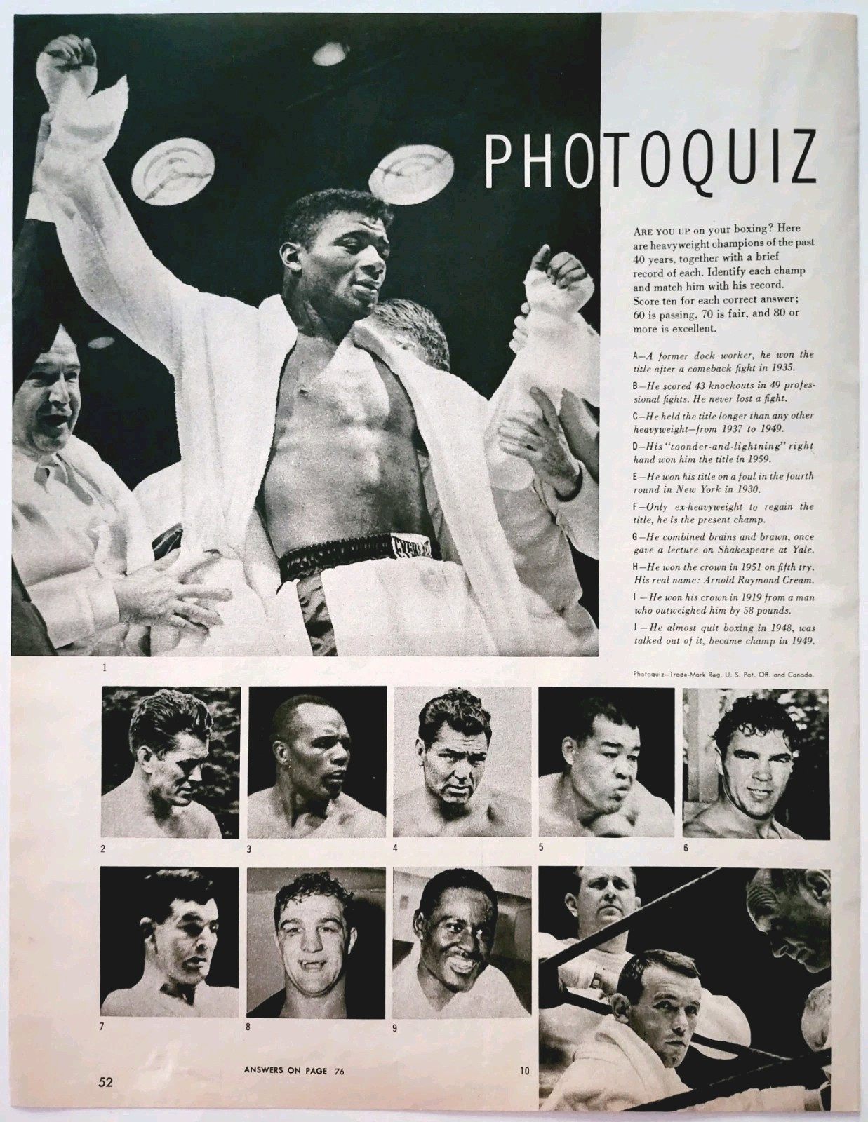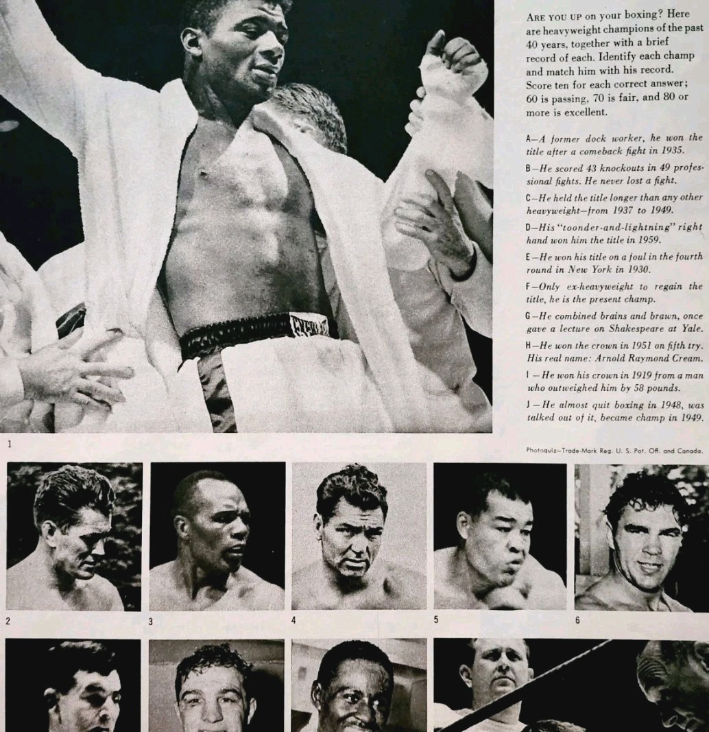 - 1961 Boxing Photoquiz Advertisement Patterson Marciano Louis Sugar Ray DWII32