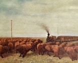 1961 Buffalo Herd Blocking Railway Train Railroad Print Card Antique Litho DWO5