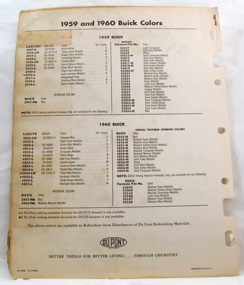 - 1961 Buick DuPont Paint Chip Color Bulletin #632