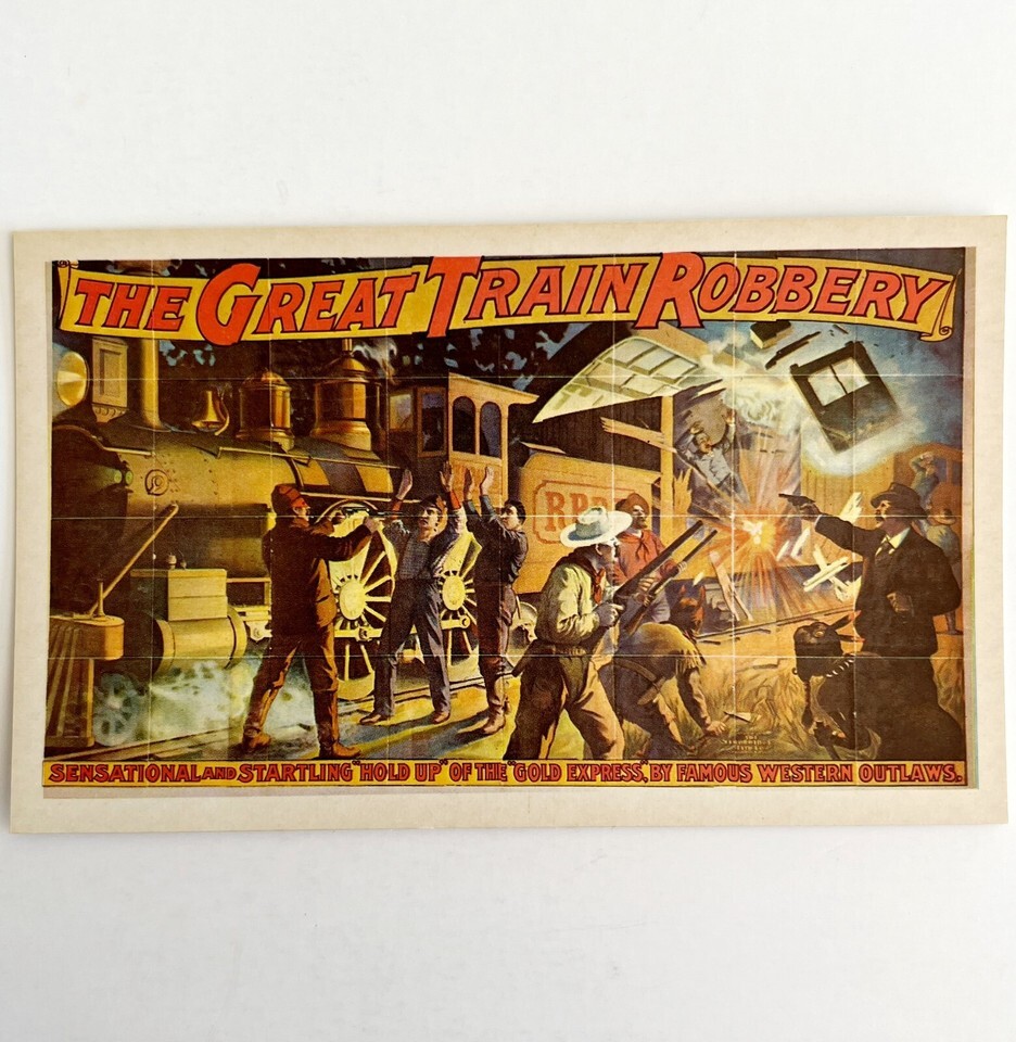 - 1961 The Great Train Robbery Gold Express Railroad Print Card Antique Litho DWO5