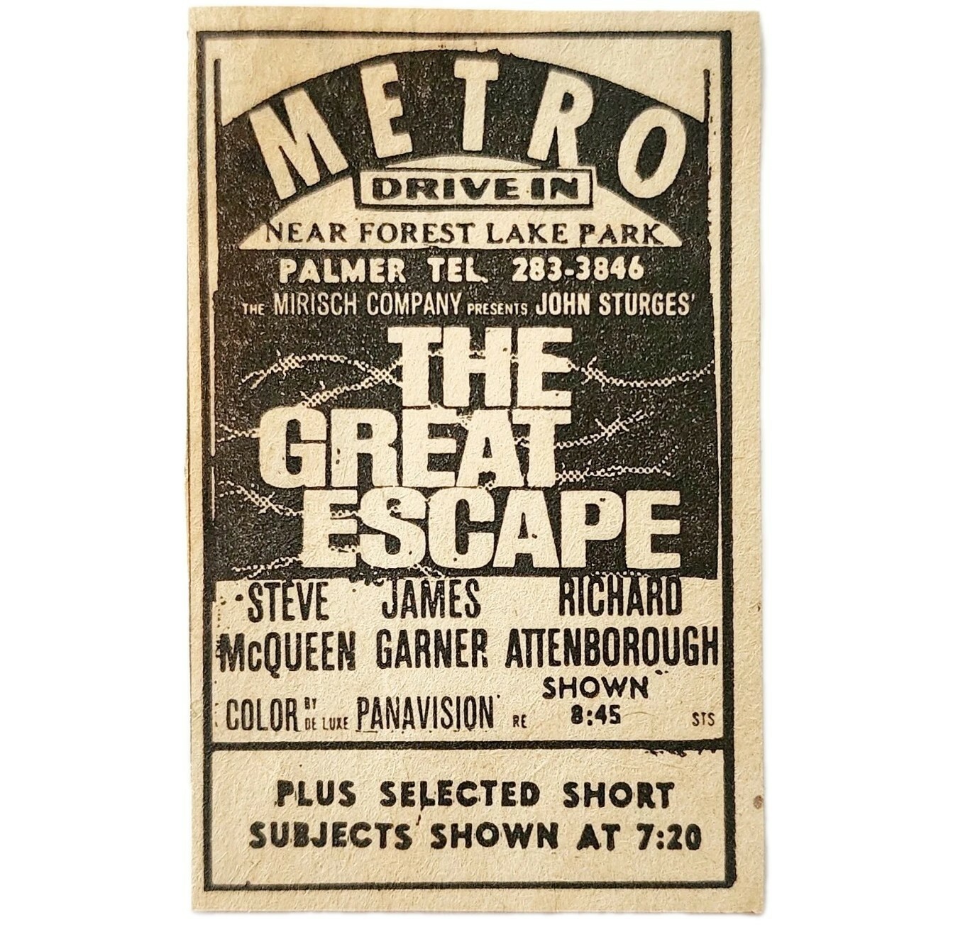 1963 Metro Drive In The Great Escape Movie Advertisement Steve McQueen Film F6F