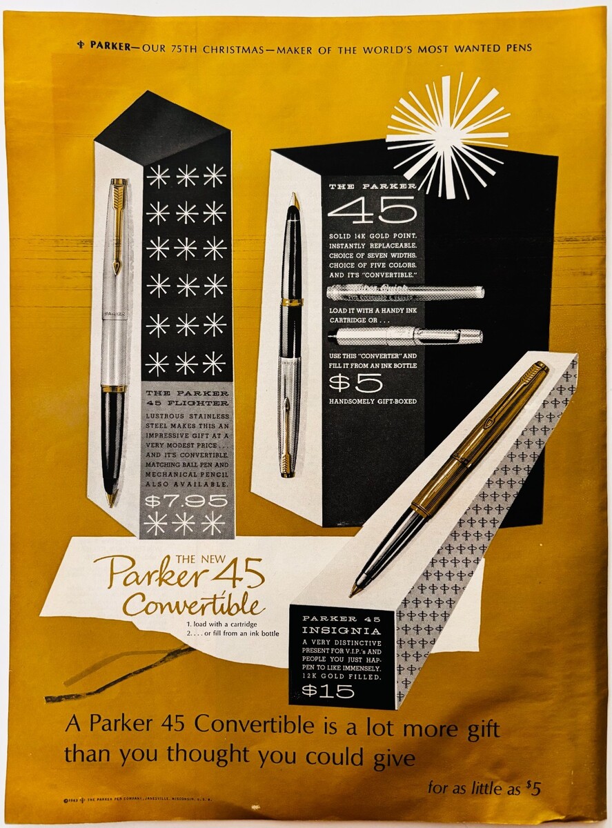 1963 Parker 45 Convertible Pen Advertisement Vintage Writing Instruments DWXX2