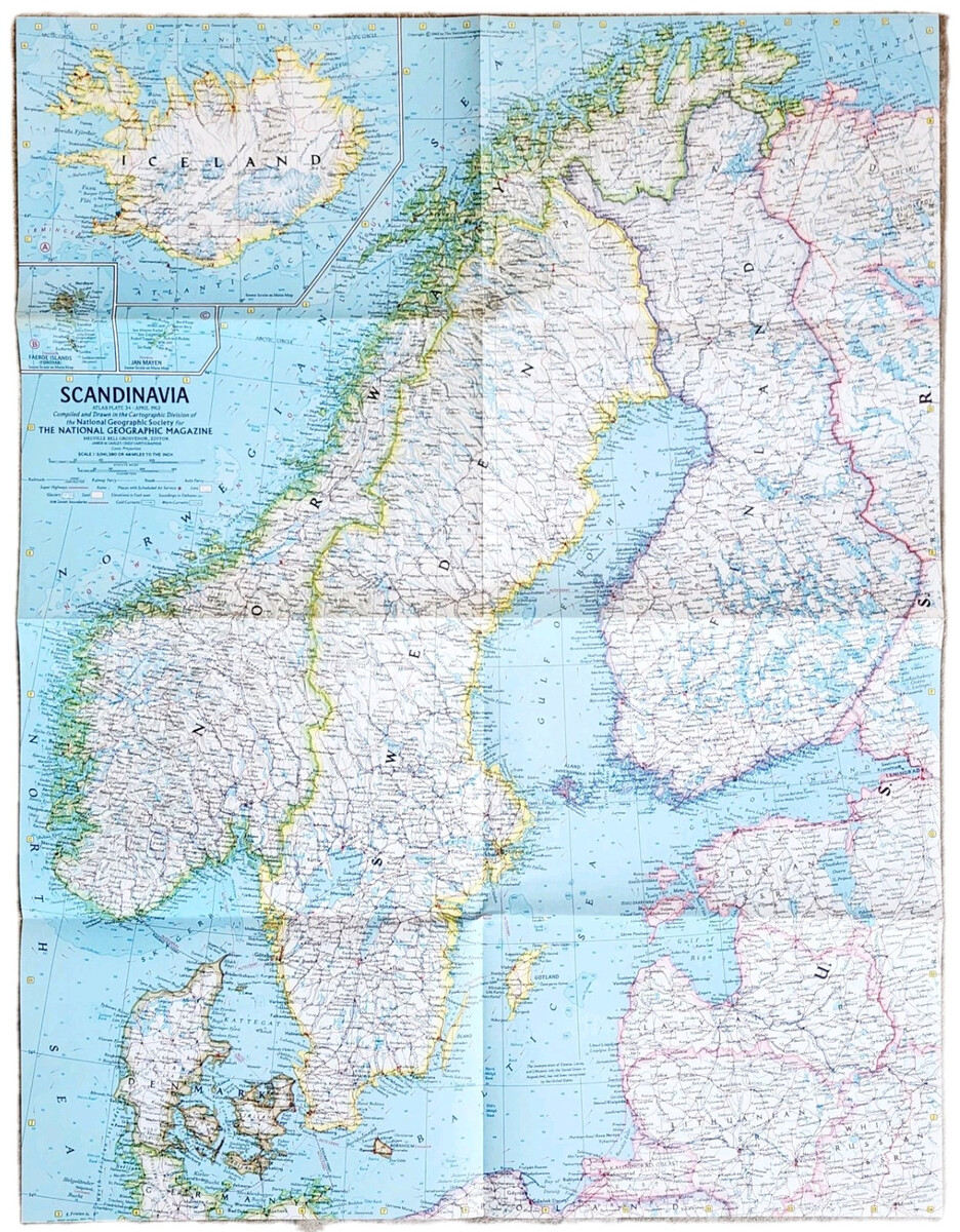 - 1963 Scandinavia Map National Geographic Norway Sweden Finland 24.5 x 19" E6A