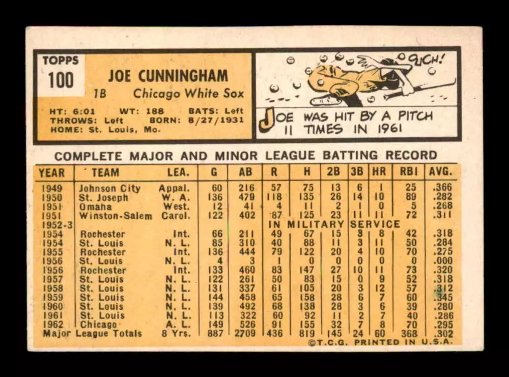 - 1963 Topps #100 Joe Cunningham VG/VGEX