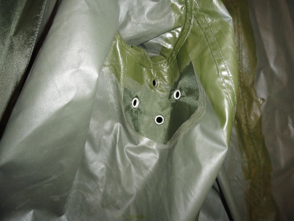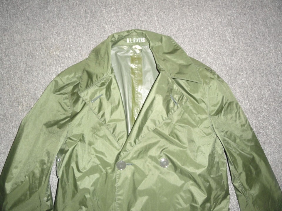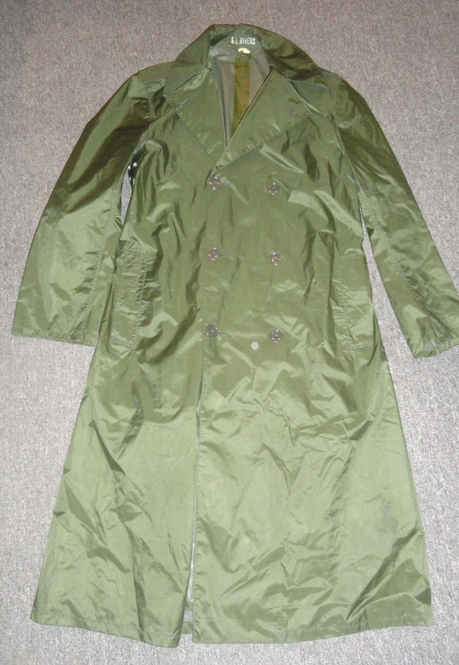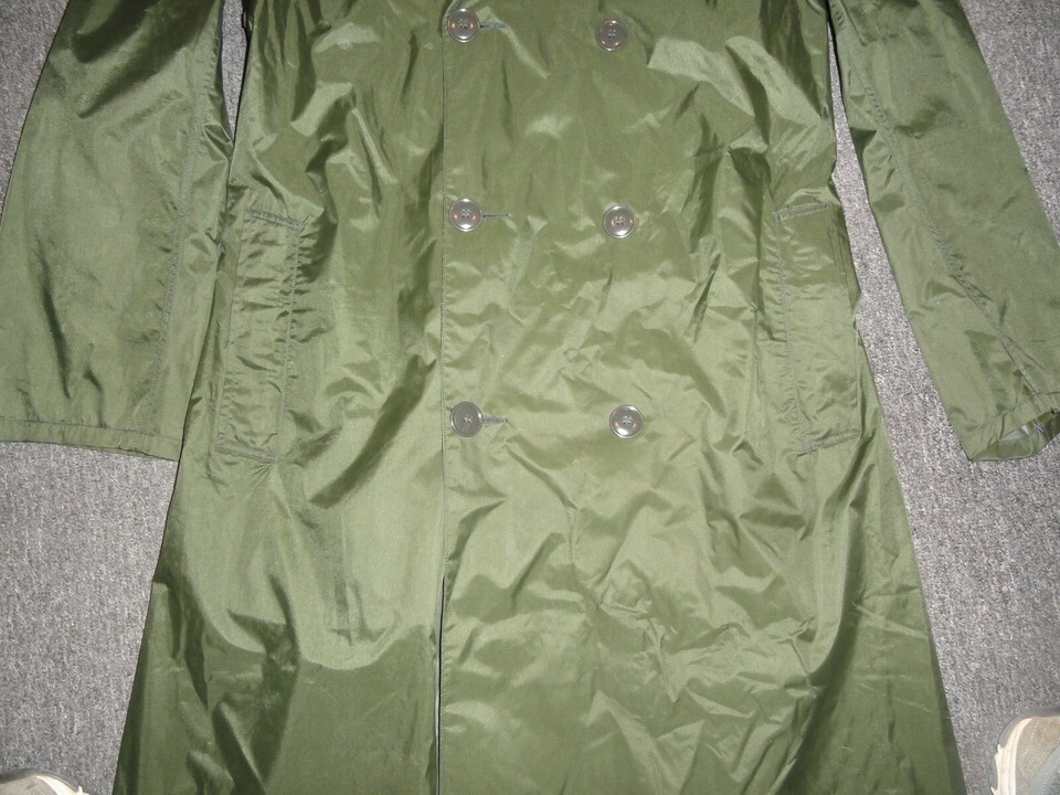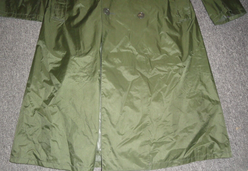 - 1963 VIETNAM WAR ERA RAINCOAT MANS NYLON RUBBER COATED GREEN M-2 JACKET 38L