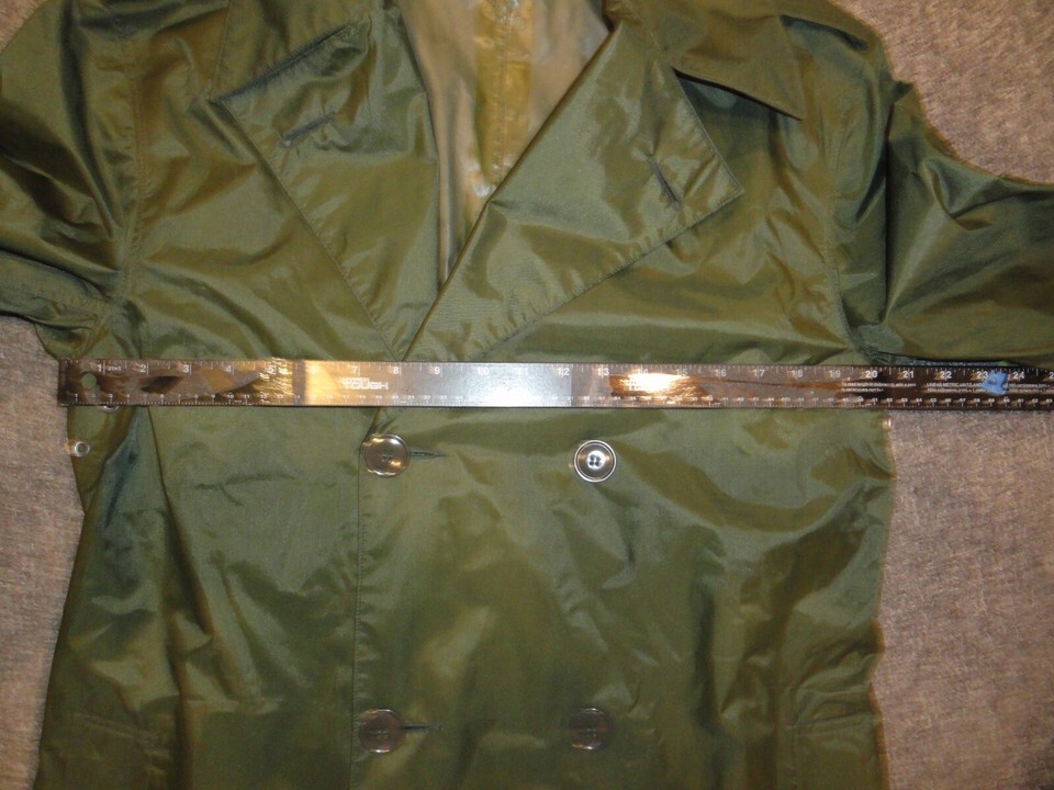 1963 VIETNAM WAR ERA RAINCOAT MANS NYLON RUBBER COATED GREEN M-2 JACKET 38L