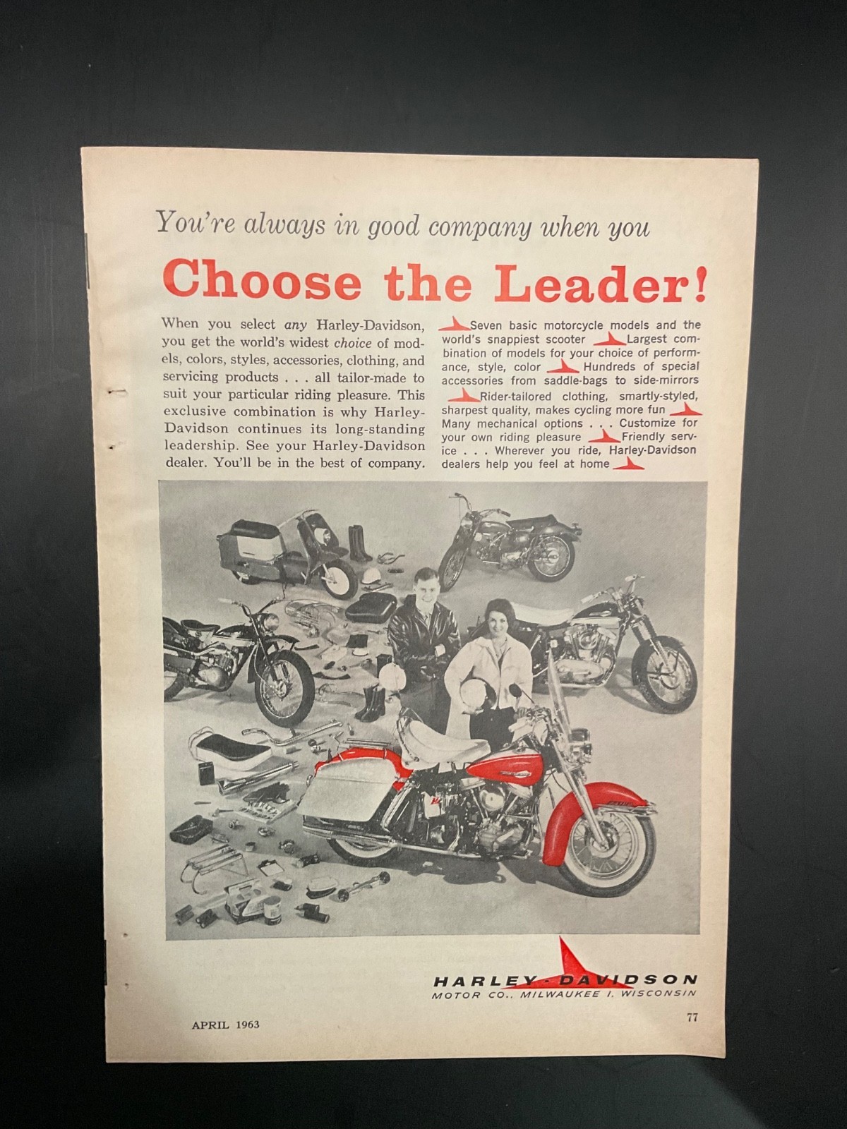 - 1964 Harley-Davidson Full Page Multi Motorcycle Print Ad 6”x9”