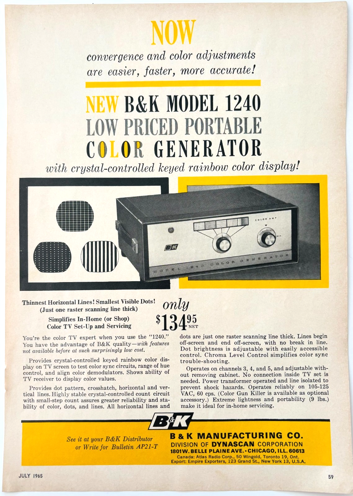 - 1965 B7K Model 1240 Color Generator Advertisement Television Electronics DWU16C