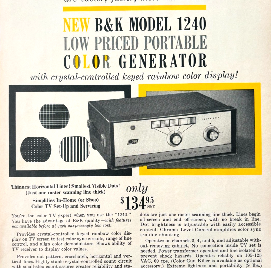 1965 B7K Model 1240 Color Generator Advertisement Television Electronics DWU16C
