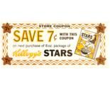 - 1965 Kellogg's Stars Breakfast Cereal Coupon 7 Cents Vintage Ephemera F6N