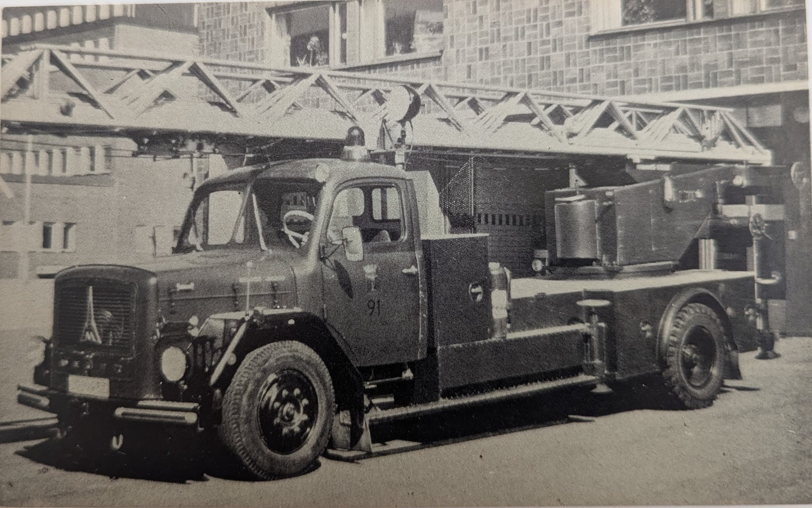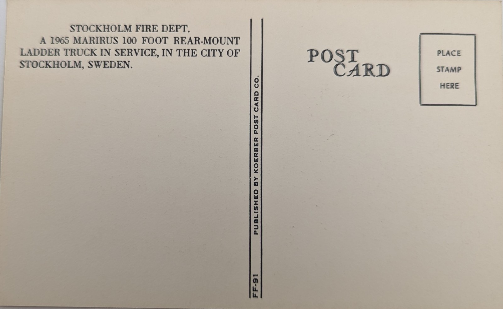 - 1965 Marirus 100 Ft Rear-Mount Ladder Truck Stockholm Sweden B & W Post Card