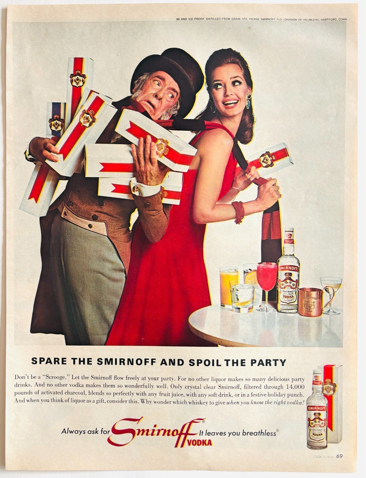 1965 Smirnoff Vodka Advertisement Vintage Distillery Liquor Christmas DWYY3