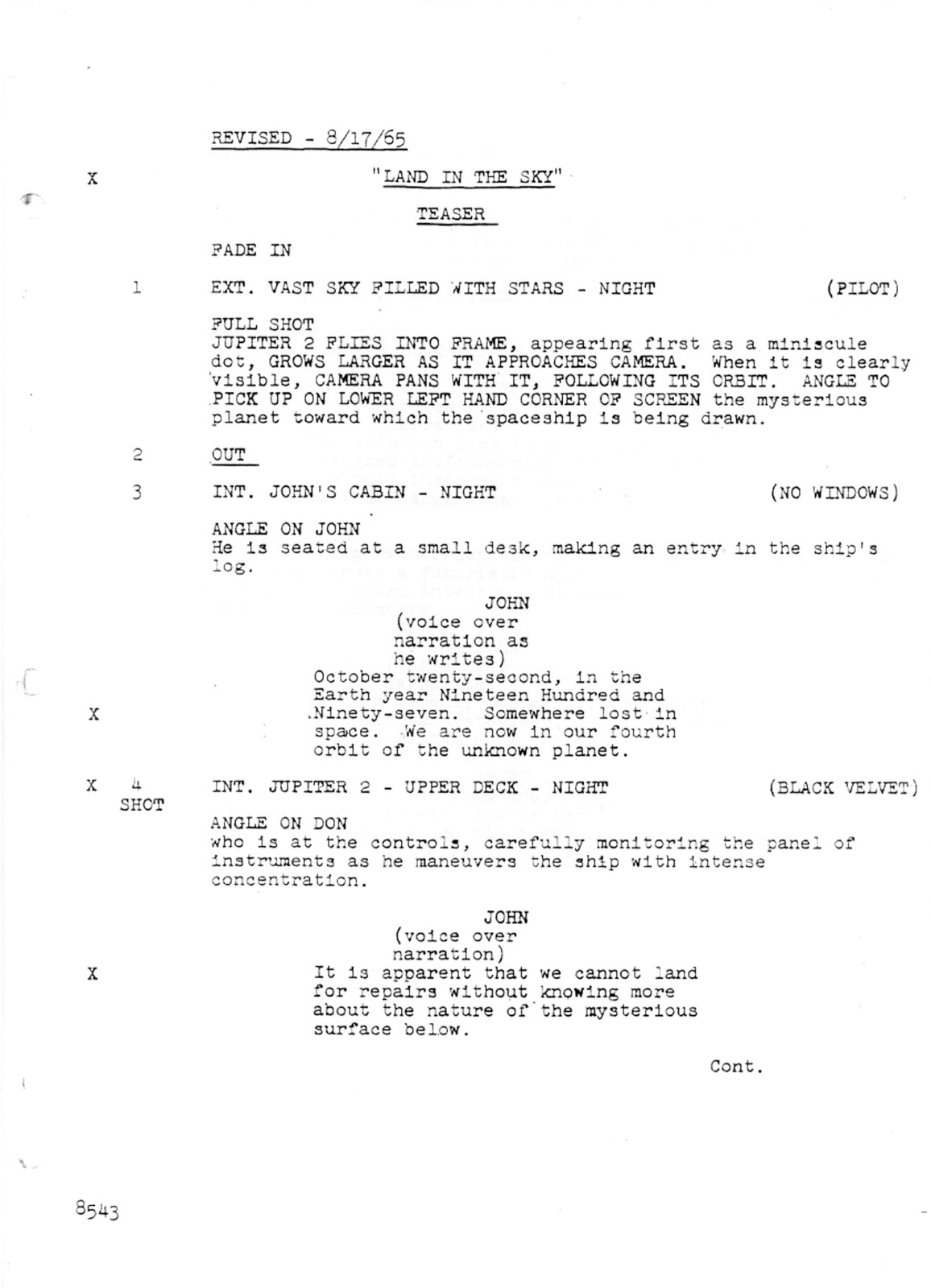 - 1965’s LOST IN SPACE: ISLAND IN THE SKY Episode #3 TV series script
