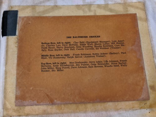 A vendre est un fanion photo de l'equipe de baseball des Orioles de Baltimore Os de 1966 en taille reelle en mauvais etat.