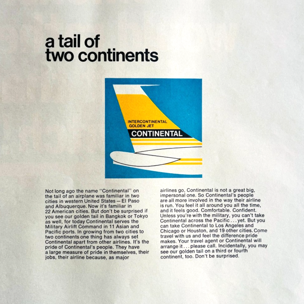 - 1966 Continental Airlines Golden Jet Advertisement Vintage Aviation DWYY2
