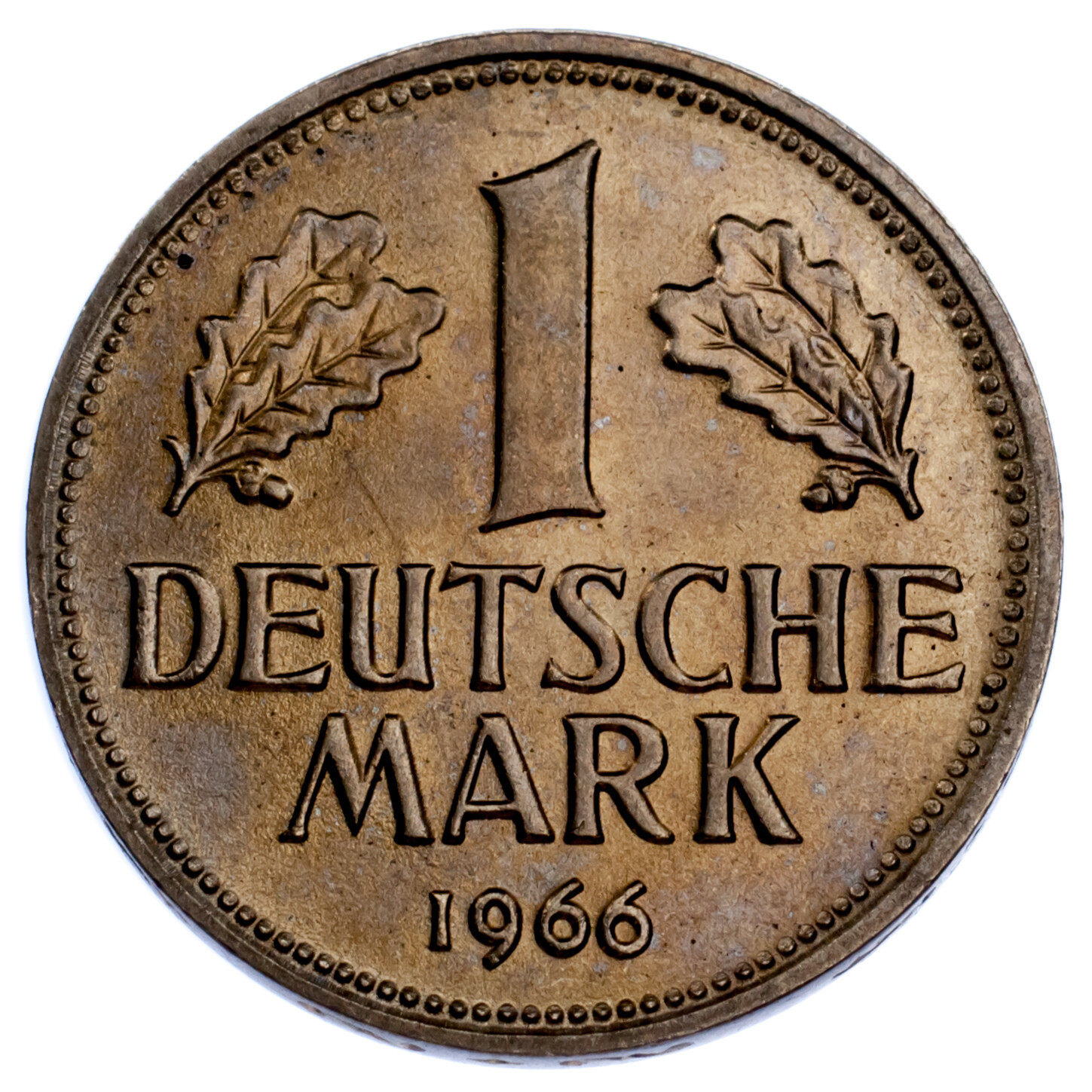 - 1966-F German 1 Mark Coin (BU Condition) Stuttgart Mint KM 110
