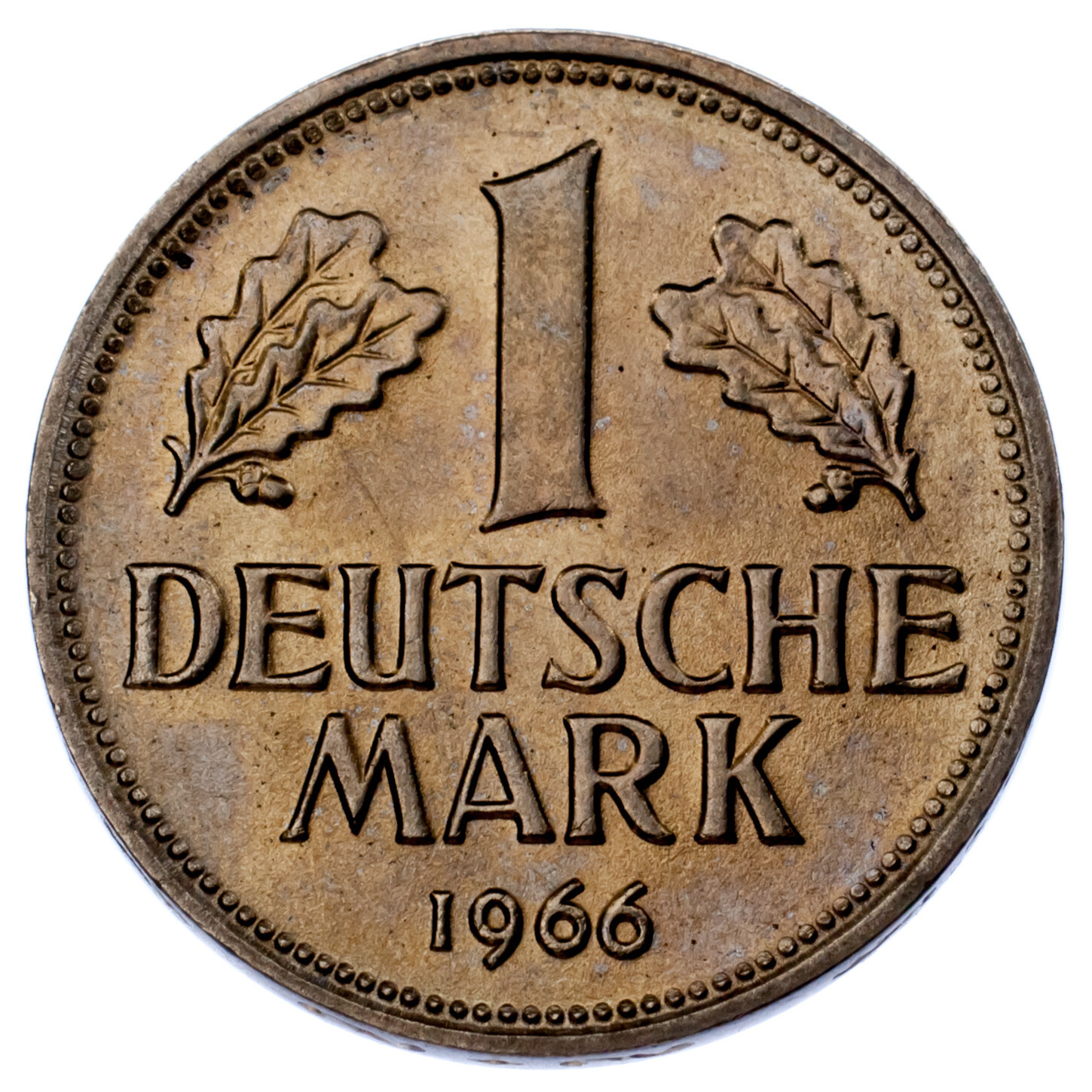- 1966-F German 1 Mark Coin (BU Condition) Stuttgart Mint KM 110