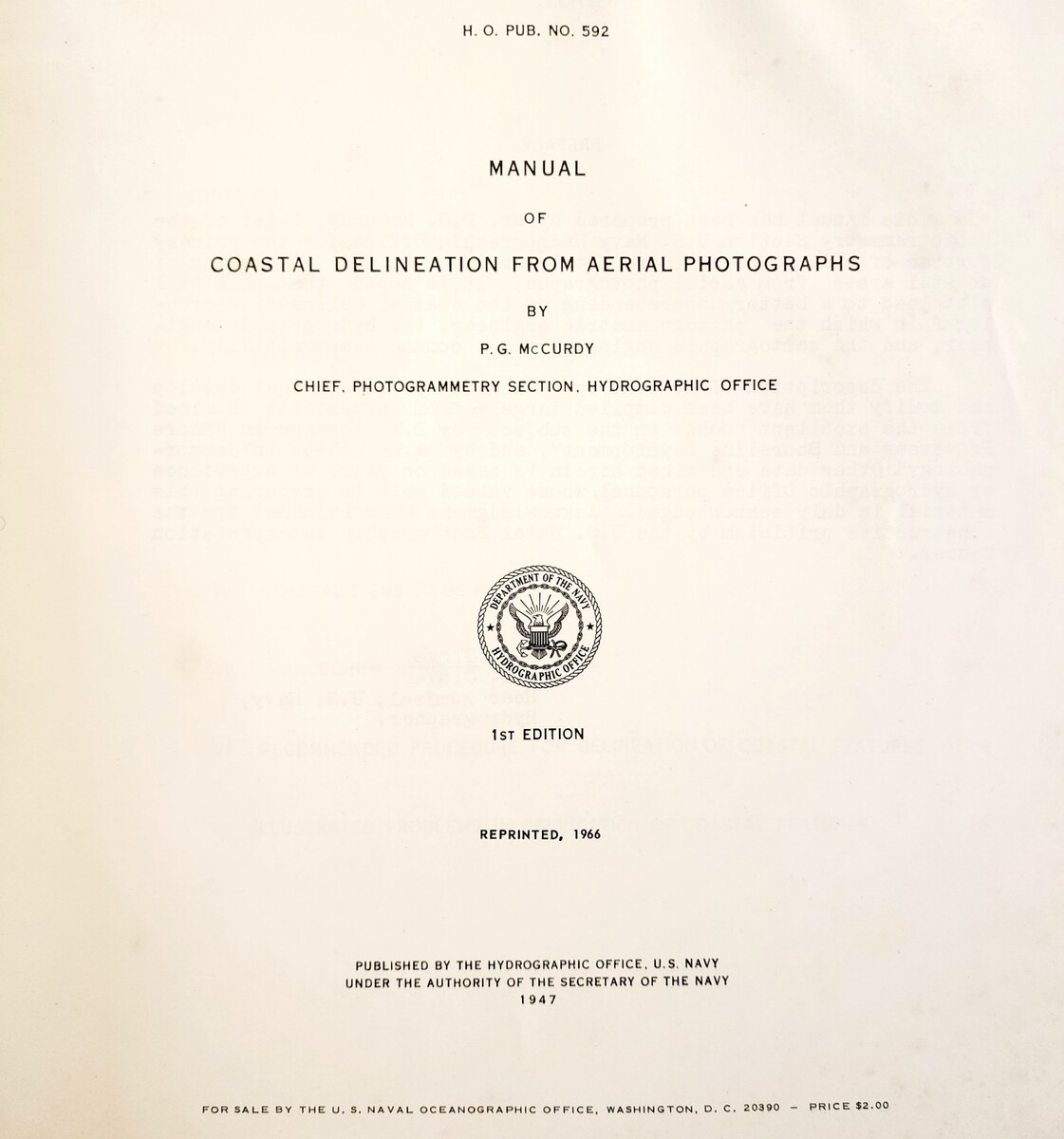 - 1966 Manual Coastal Delineation From Aerial Photographs 1st Edition USN WHBS