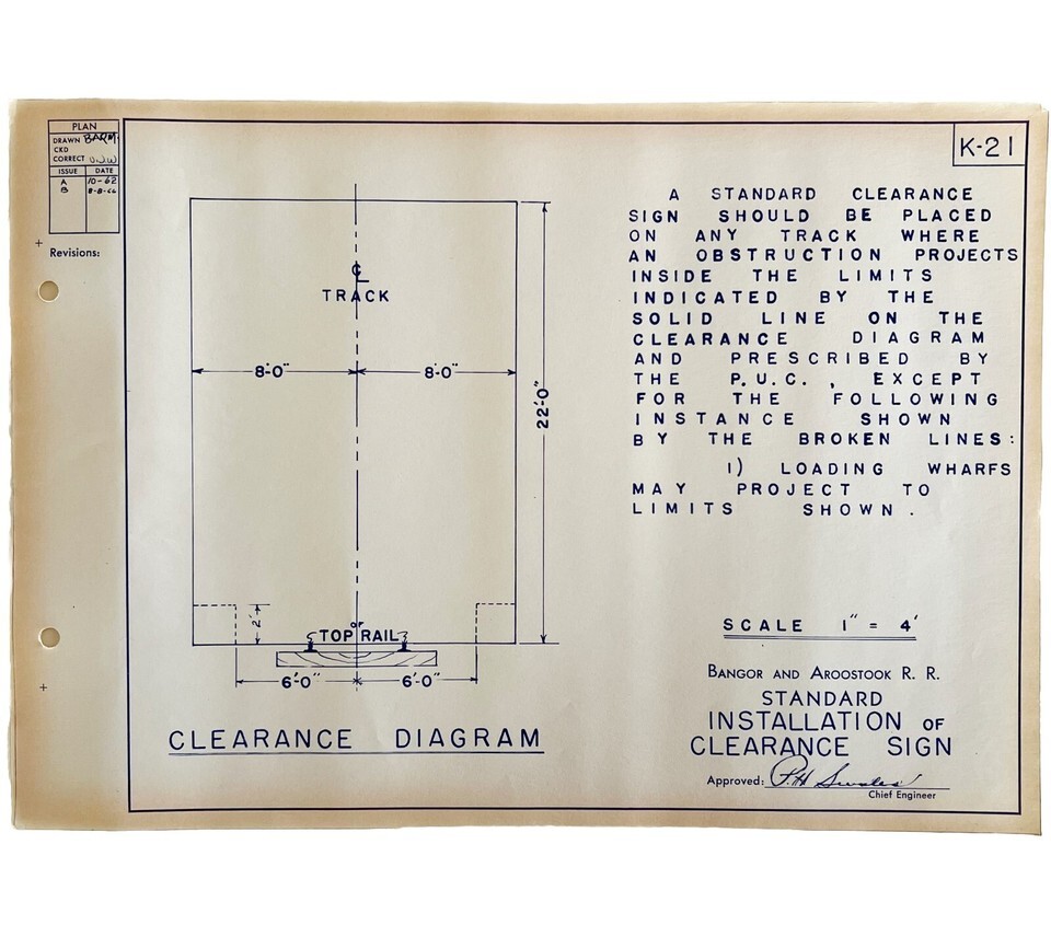 - 1966 Railroad Bangor Aroostook Clearance Sign Installation Blueprint K21 DWDD12